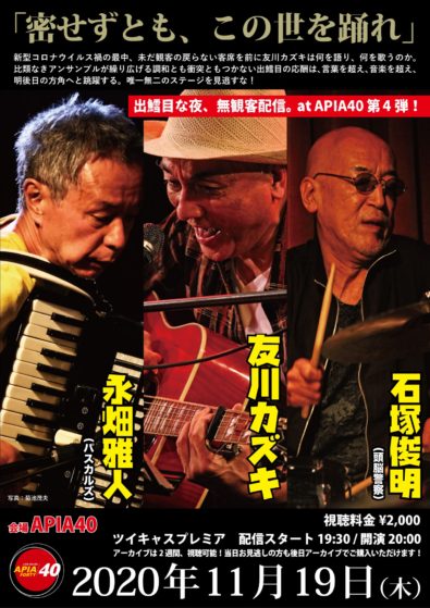 開場19:00pm 開演19:30pm 配信のみのライブに変更されました。